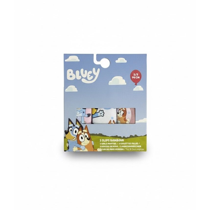 Caja de 3 braguitas de la colección Bluey, ideal para el uso cotidiano cada una cuenta con un diseño diferente con el encanto inconfundible de Bluey. Tallas de 2 a 8 años.
