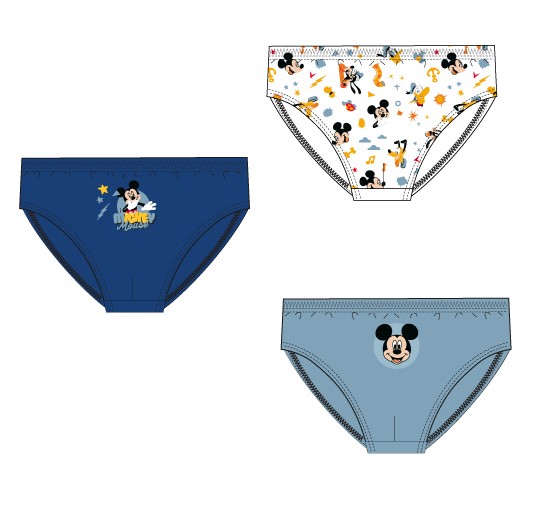 Calzoncillos Mickey Mouse para los más pequeños, con el icónico personaje de Mickey Mouse. Este encantador pack de ropa interior infantil es perfecto para añadir un toque de magia Disney al día a día de tu hijo. Cada slip está confeccionado con 100% algodón de alta calidad, garantizando una suavidad excepcional y la máxima transpirabilidad para la delicada piel de los niños. Los diseños son variados y divertidos, incluyendo un slip azul oscuro con un Mickey sonriente, uno azul claro con la silueta de su cabeza, y otro blanco con un estampado repetido de Mickey en diferentes poses. Esta caja de tres calzoncillos Mickey Mouse asegura comodidad y estilo, haciendo que vestirse sea una aventura divertida para tu pequeño fan de Mickey Mouse. Son ideales para el uso diario, ofreciendo durabilidad y facilidad de cuidado.