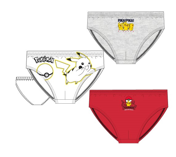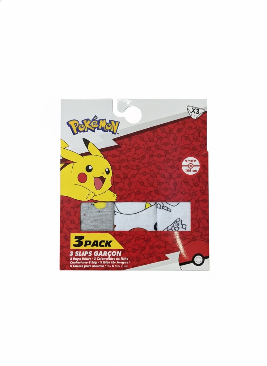 • Incluye tres slips con diseños variados de Pokémon, destacando a Pikachu en diferentes poses.