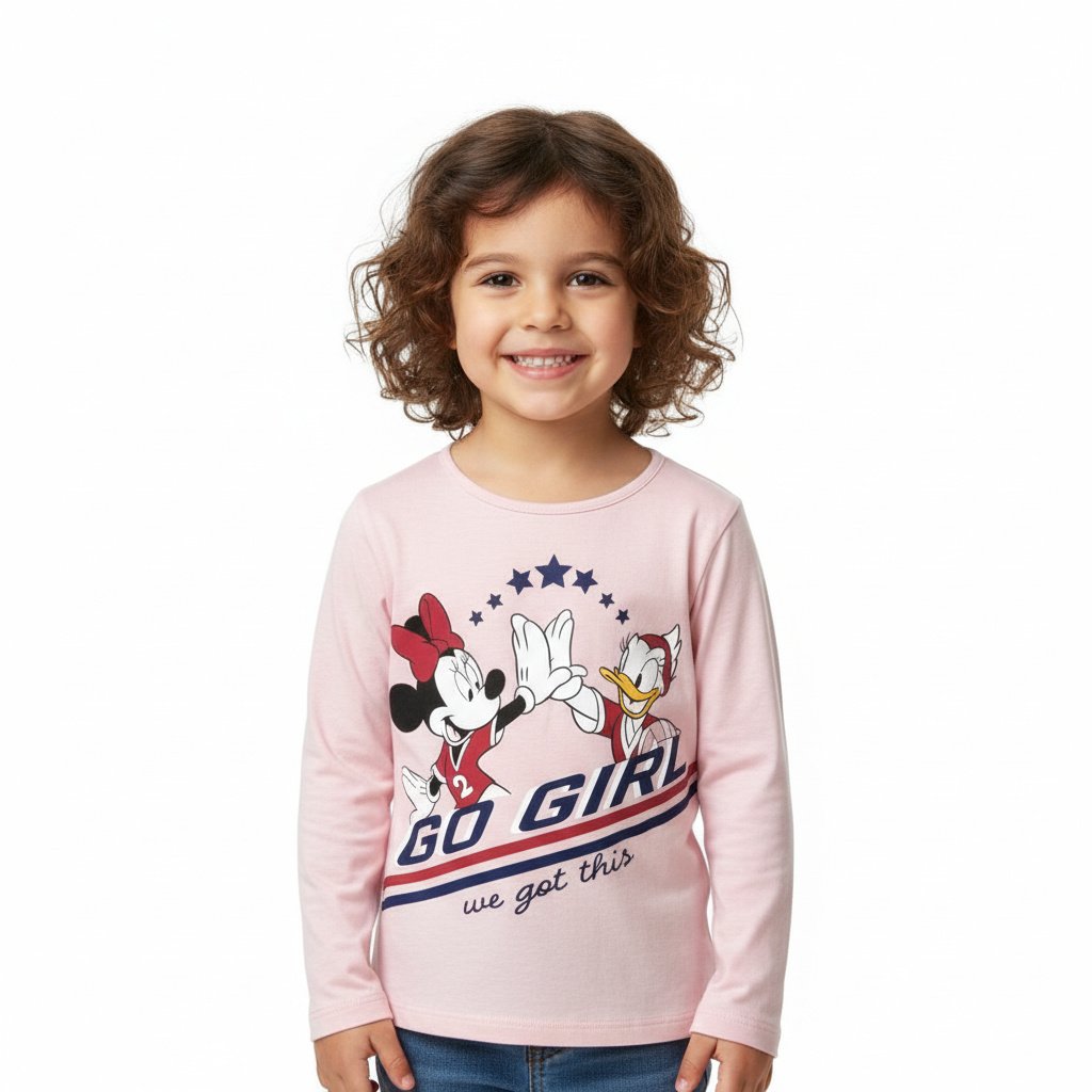 CAMISETA MINNIE GO GIRL es la prenda ideal para las pequeñas entusiastas de Disney que buscan fusionar estilo y comodidad en su día a día. Esta encantadora camiseta de manga larga, presentada en un suave color rosa, destaca por su vibrante diseño frontal que muestra a Minnie Mouse y Daisy Duck bajo el inspirador mensaje «GO GIRL», enmarcado por estrellas decorativas. Es una camiseta perfecta para la escuela, el juego o cualquier aventura casual, ofreciendo un toque de alegría y empoderamiento. La calidad de esta camiseta asegura durabilidad y una sensación agradable al tacto, convirtiéndola en una adición fundamental al guardarropa infantil. Su diseño lúdico y el icónico personaje de minnie la hacen una elección fabulosa para expresar personalidad y diversión.