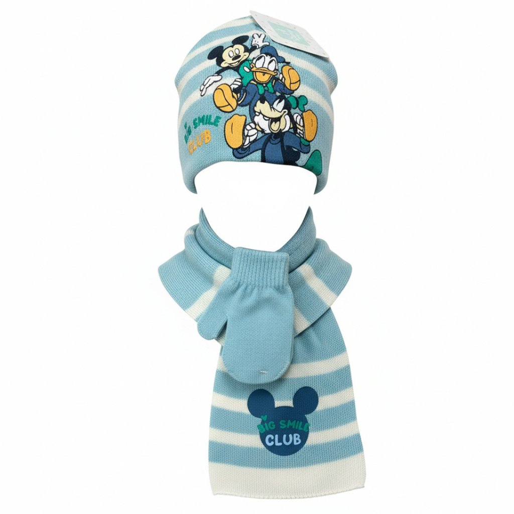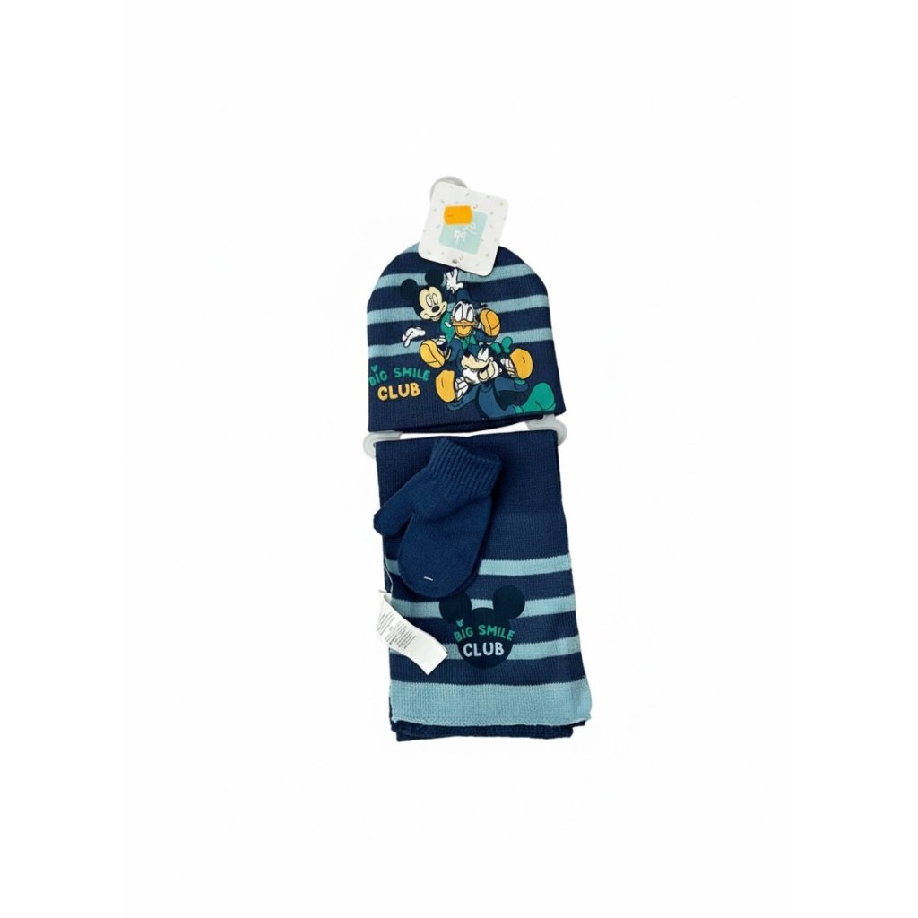 Conjunto de invierno para niño compuesto de bufanda, guantes y gorro. Tejido de punto suave y cálido. Colección Mickey Mouse, Disney.