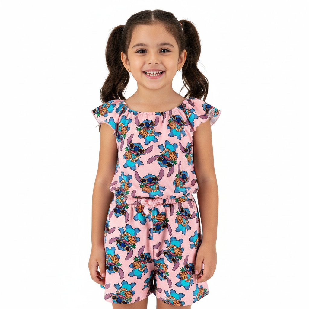 Conjunto Stitch es la prenda ideal para que las más pequeñas disfruten del verano con estilo y comodidad. Este encantador conjunto stitch presenta un diseño vibrante con el adorable personaje de Disney, Stitch, en un estampado divertido y colorido sobre un fondo rosa. Perfecto para los días soleados, este mono captura la esencia de la diversión veraniega y la magia de Lilo & Stitch, haciendo que cada aventura sea aún más especial. Su tejido ligero y su diseño holgado aseguran que las niñas puedan moverse libremente mientras juegan, corren y exploran. Es una opción fantástica para cualquier ocasión casual durante la temporada de verano, combinando funcionalidad y un toque de fantasía.