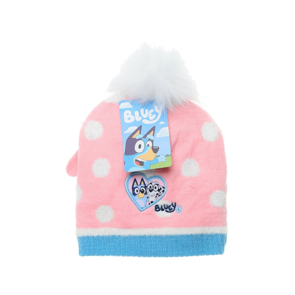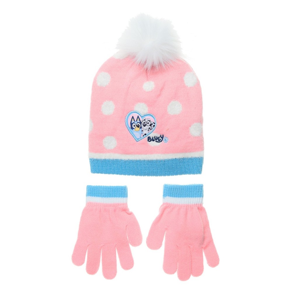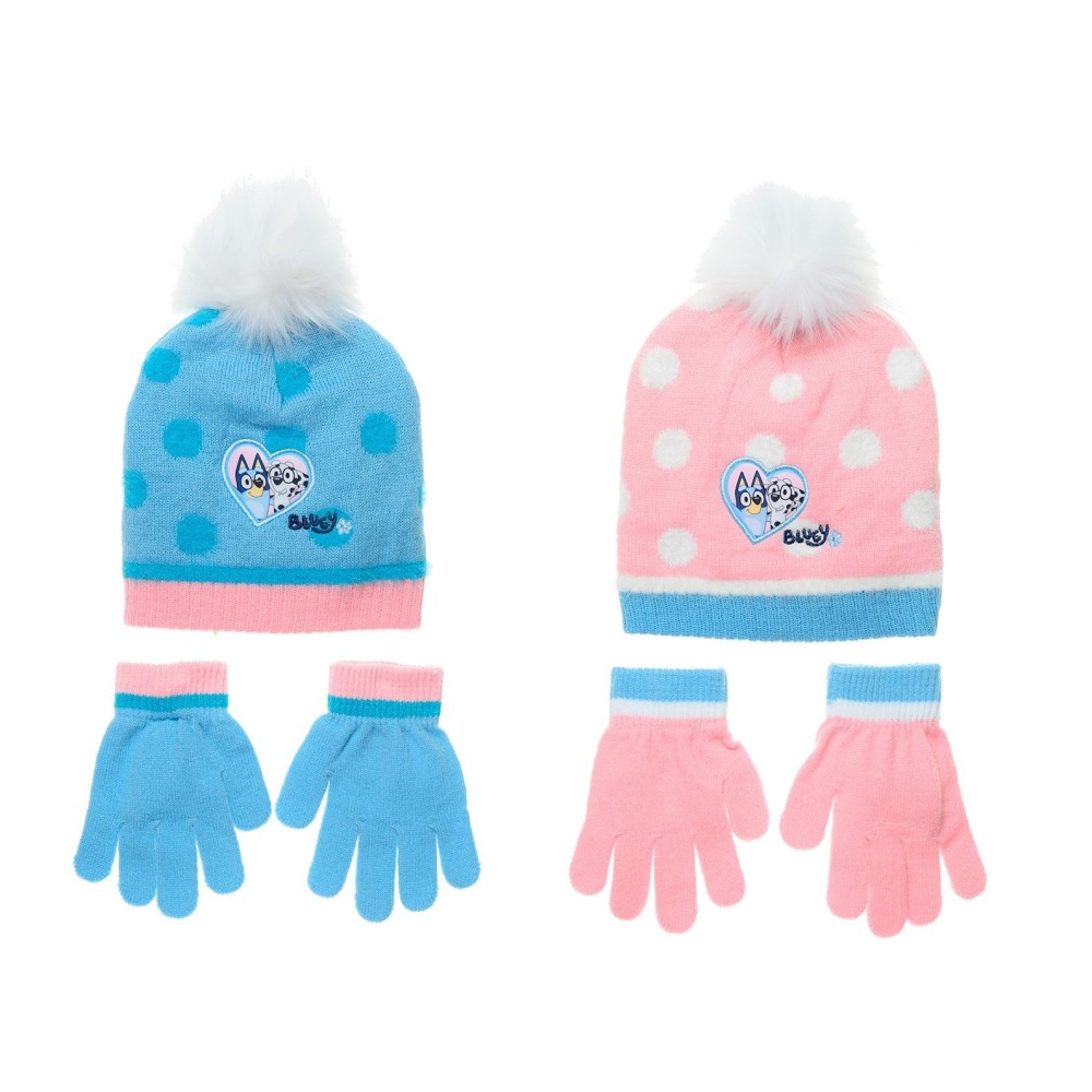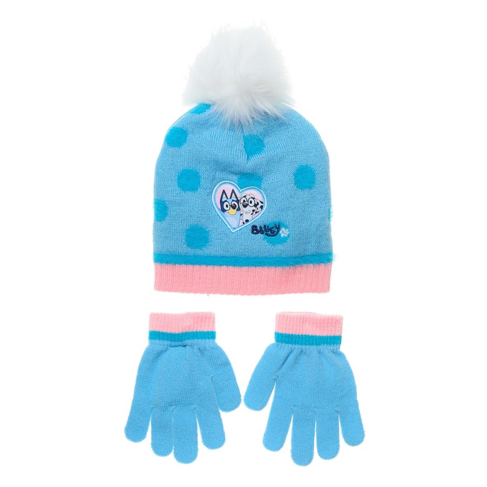 Conjunto de gorro y guantes de Bluey, con puños elásticos. Disponible en dos colores.