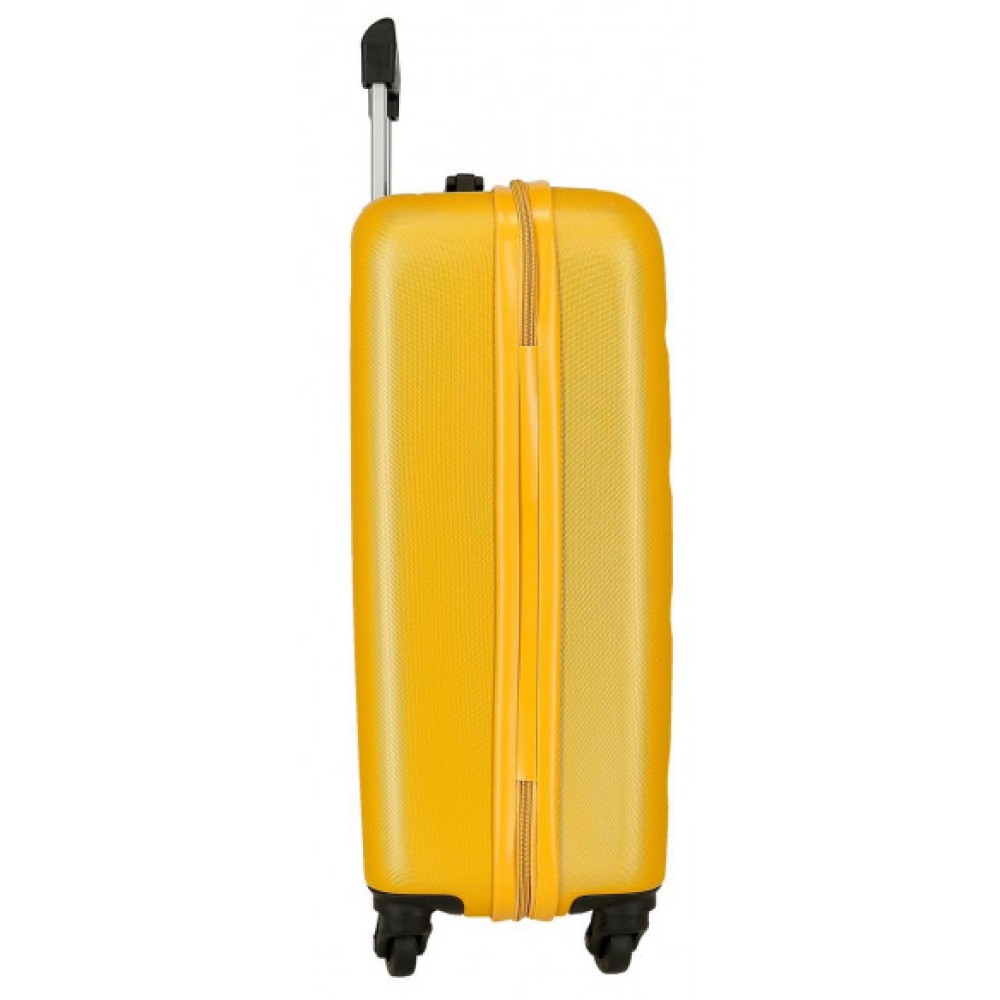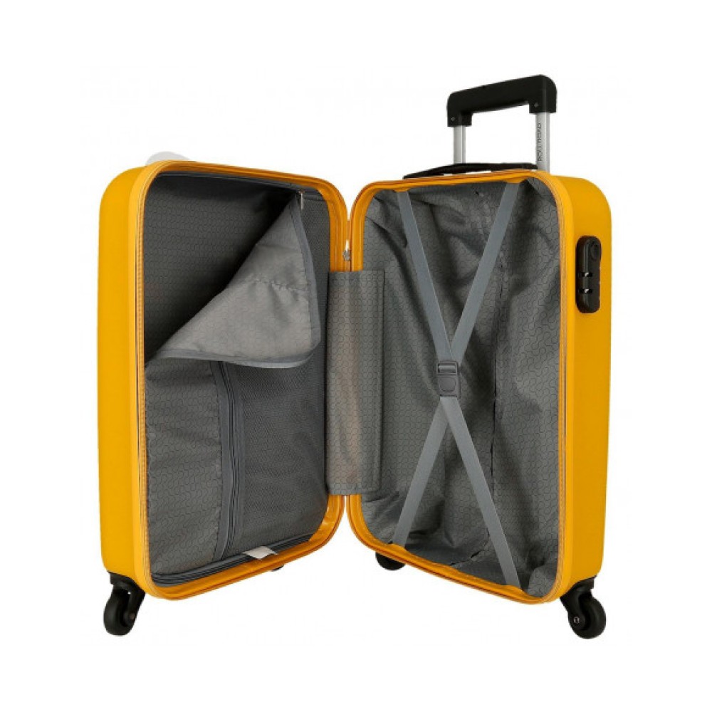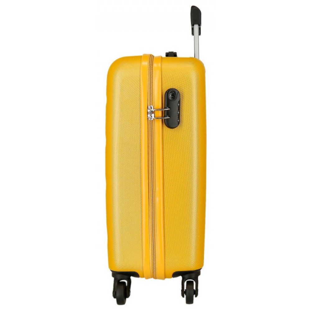 MALETA 55CM AMARILLO es la compañera de viaje ideal para quienes buscan combinar estilo, funcionalidad y durabilidad en un mismo producto. Esta maleta compacta está específicamente diseñada para cumplir con las normativas de equipaje de mano de la mayoría de las aerolíneas, permitiéndote viajar con todo lo esencial sin la necesidad de facturar. Su vibrante color ocre no solo le confiere un toque distintivo y moderno, sino que también facilita su identificación en cualquier cinta de equipajes. Fabricado con materiales de alta resistencia, esta maleta 55cm amarillo garantiza la máxima protección para tus pertenencias. Es la elección perfecta para escapadas de fin de semana, viajes de negocios cortos o como una adición elegante a tu colección de maletas. la trolley en tono ocre te asegura un desplazamiento cómodo y con personalidad.