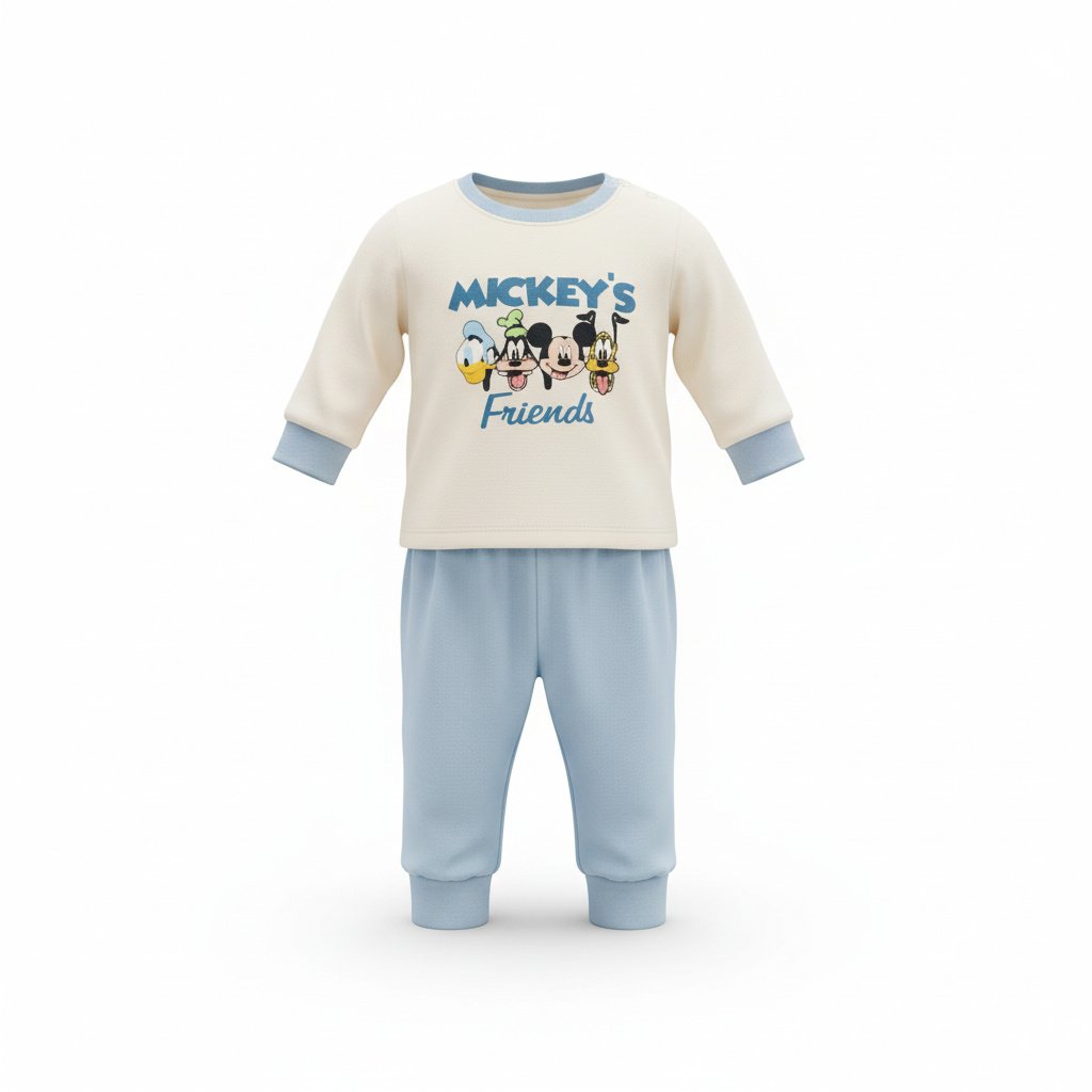 Este pijama bebe manga larga Mickey es la elección ideal para asegurar el confort y la calidez de los más pequeños durante las noches de invierno. Este adorable conjunto de dos piezas, diseñado pensando en la delicada piel del bebé, presenta un estampado vibrante de Mickey y sus amigos en la parte superior, que añade un toque de diversión a la hora de dormir. Fabricado con suave algodón de alta calidad, este pijama bebe manga larga mickey garantiza una transpirabilidad excelente y una sensación agradable al tacto, ideal para mantener al bebé abrigado y cómodo. Su diseño de manga larga es perfecto para las temperaturas más frescas, ofreciendo una protección óptima sin restringir el movimiento.