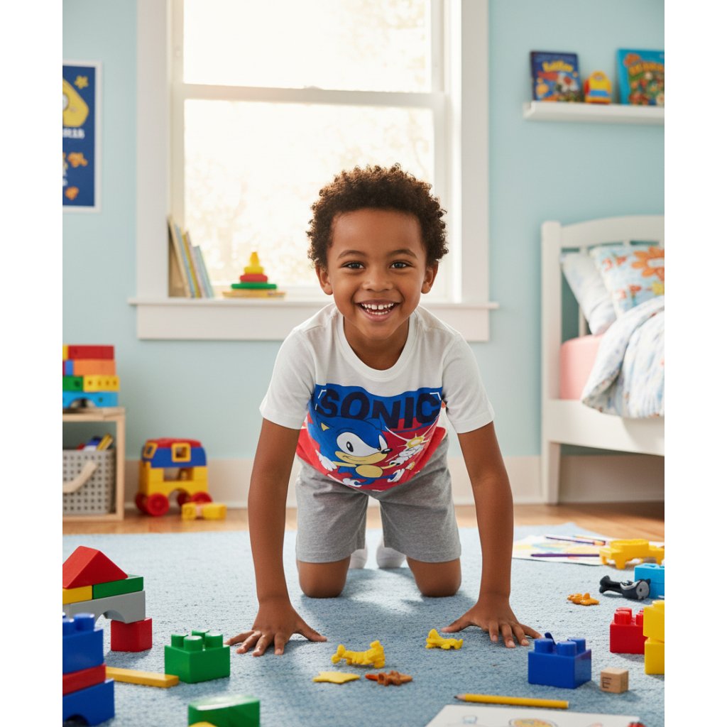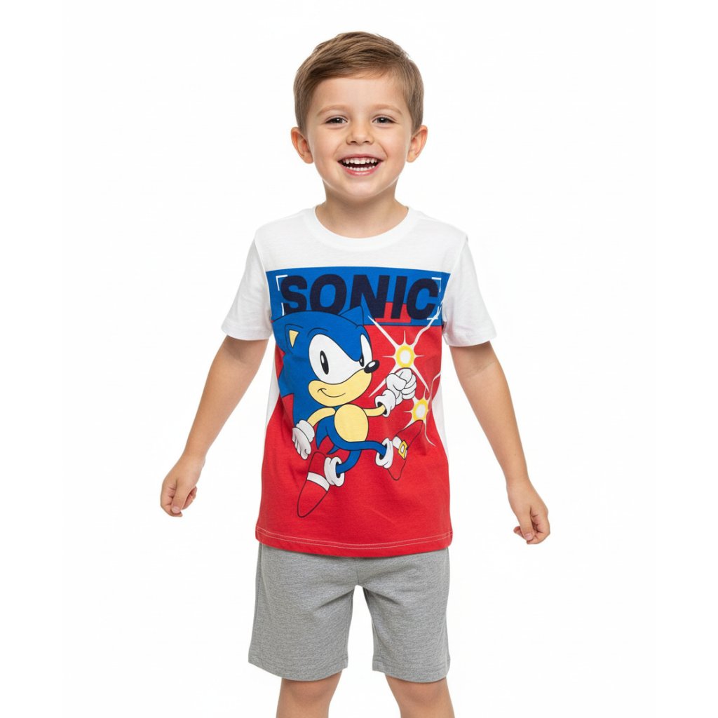 PIJAMA SONIC MANGA CORTA es la prenda ideal para que los pequeños fans del erizo más rápido disfruten de sus noches de verano con estilo y comodidad. Este vibrante conjunto de ropa de cama, perfecto para la temporada de calor, se compone de una camiseta de manga corta con un llamativo diseño de Sonic, el icónico personaje de videojuegos, corriendo a toda velocidad. El pantalón corto a juego, de color gris, complementa perfectamente la parte superior, ofreciendo una libertad de movimiento inigualable. Diseñado pensando en la frescura, este pijama sonic manga corta es una excelente opción dentro de la categoría de pijamas infantiles, garantizando que los niños se mantengan frescos y confortables durante las noches cálidas. Es la ropa de verano por excelencia para los amantes de Sonic, combinando diversión y funcionalidad en una sola pieza de ropa de verano.