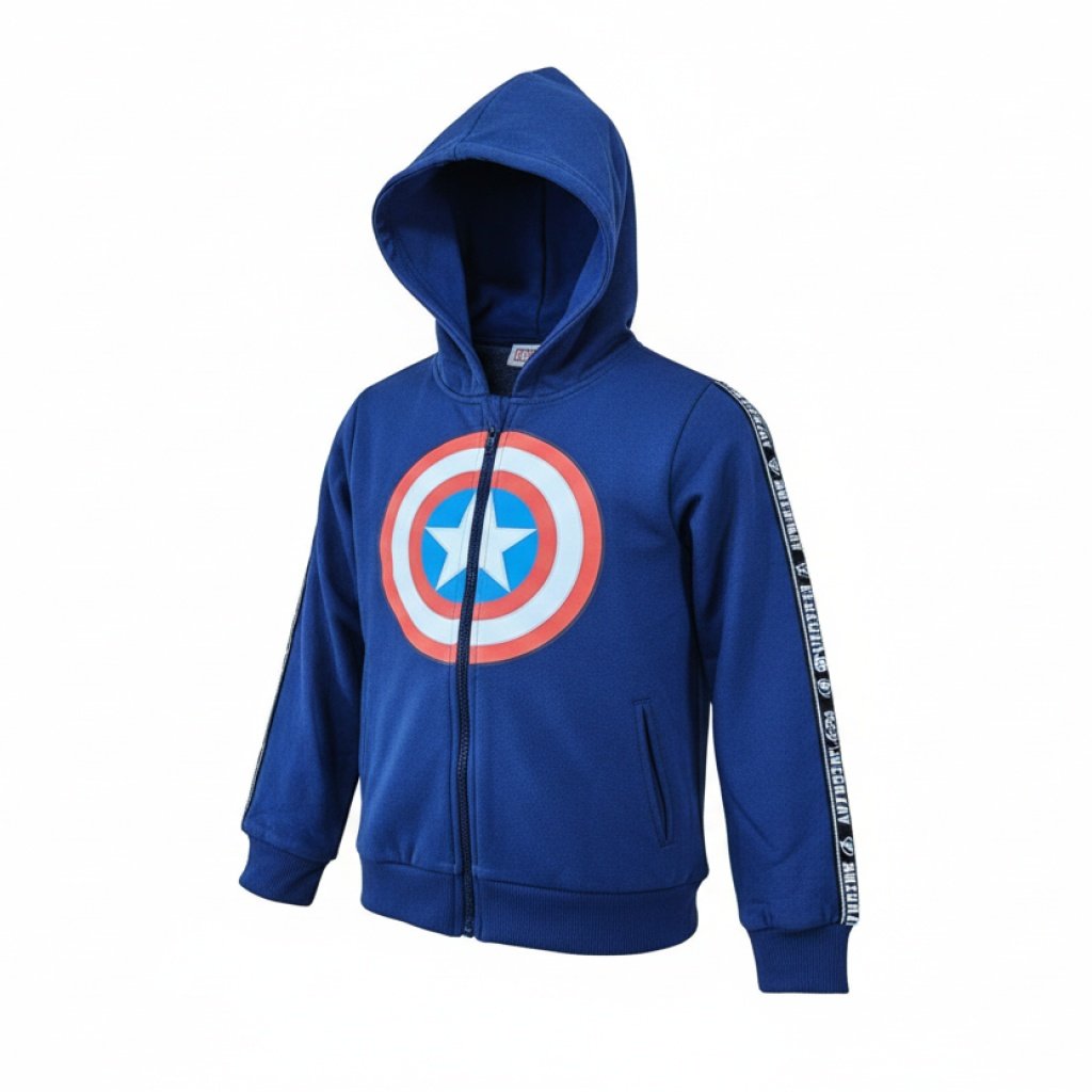 Sudadera Capitán América es la prenda ideal para los jóvenes seguidores de los Vengadores que desean lucir su pasión por el universo Marvel. Esta cómoda y vibrante sudadera, parte de la exclusiva colección Marvel, está diseñada para ofrecer calidez y estilo durante el invierno. Confeccionada en un suave tejido azul y adornada con el inconfundible escudo del Capitán América en el pecho, esta sudadera capitán américa no solo es un símbolo de heroísmo, sino también una pieza funcional para el día a día. Incluye una práctica capucha para protegerse del frío y un diseño que integra un bolsillo canguro delantero, perfecto para mantener las manos abrigadas o guardar pequeños objetos. Su cierre de cremallera frontal facilita su uso, convirtiéndola en una elección esencial para cualquier aventura.